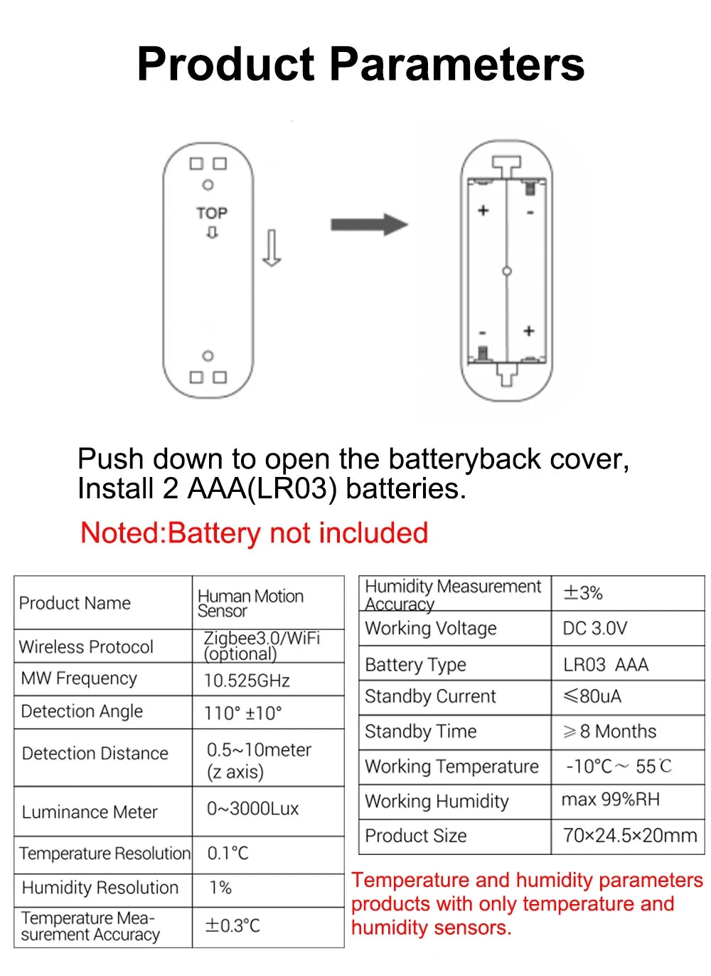 5, Support Tuya/smart life App, must be use zigbee gateway; Motion Sensor+Luminance+Temperature+Humidity Detection